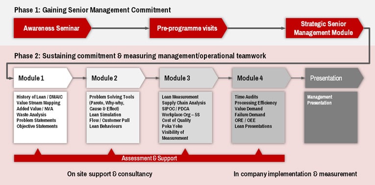 - Embedding Lean behaviours, giving participants the ability to develop further projects at the end of the programme